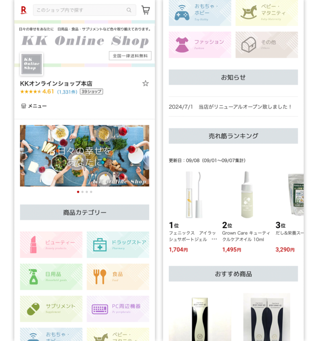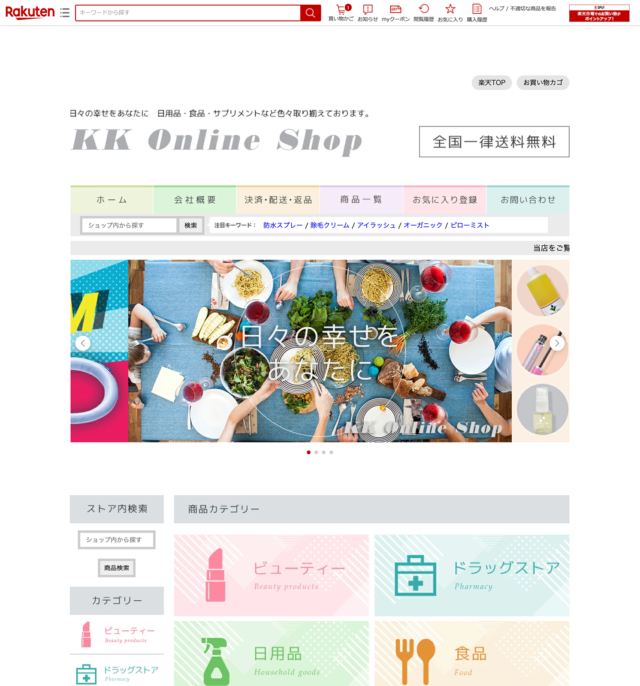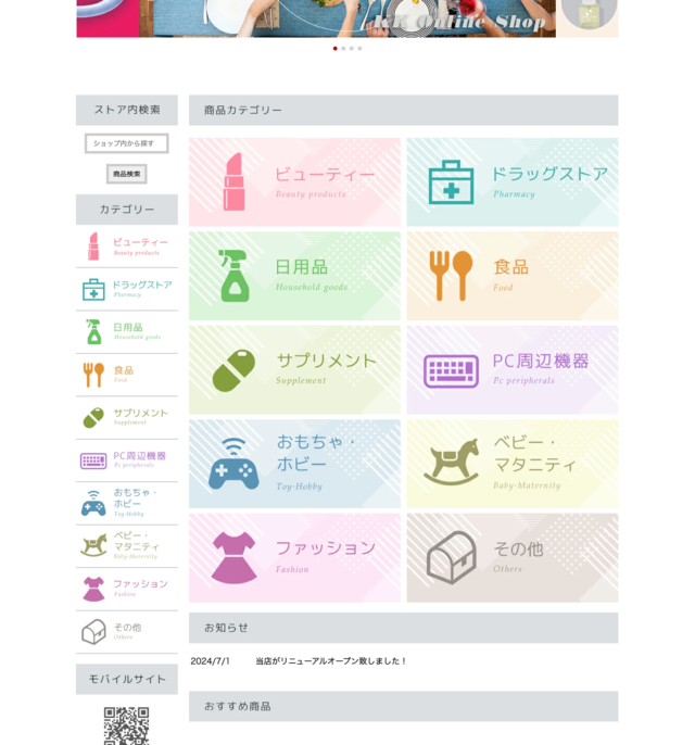 カテゴリーバナーにはアイコンを使い、色合いも淡いペールトーンで、女性向けを意識したデザインに作成させていただきました。