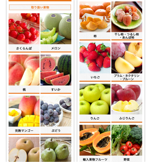 シャープなデザインに作らせていただき、果物の画像をふんだんに使った事で華やかな印象になっています。