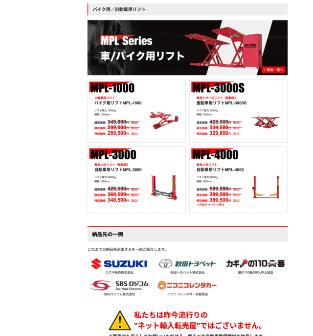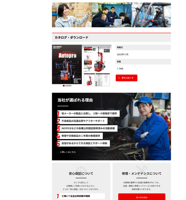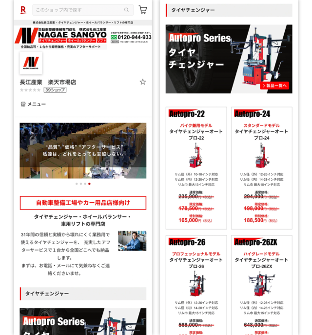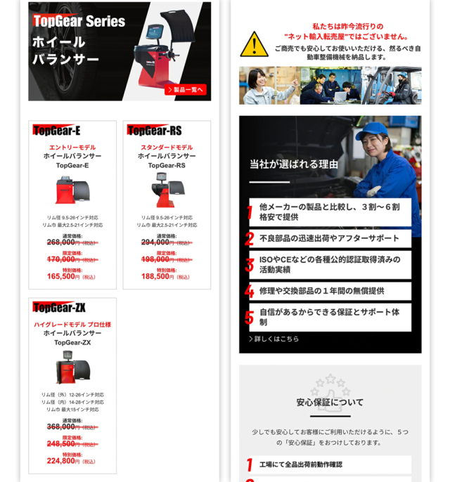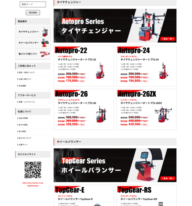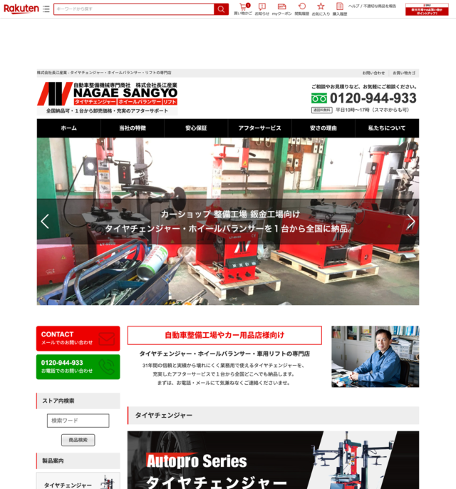 車のタイヤチェンジャーやホイールバランサーなどを販売されている店舗様です。