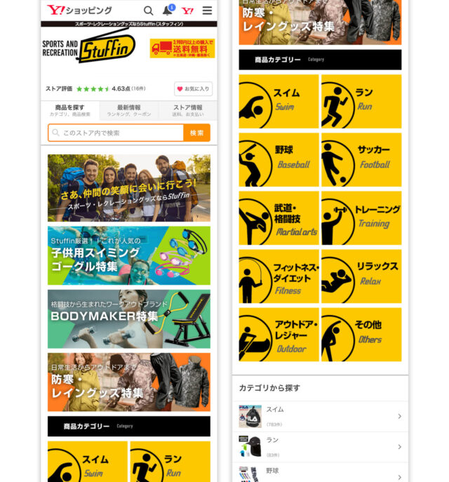 ロゴの黄色と黒をベースに、シャープでアクティブな雰囲気に作成させていただきました。
